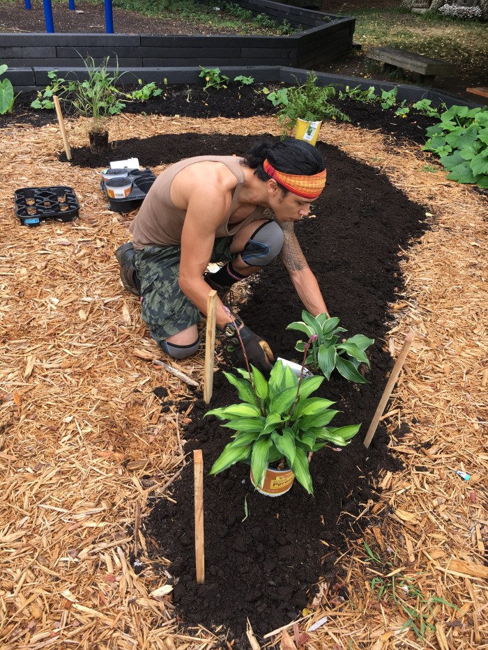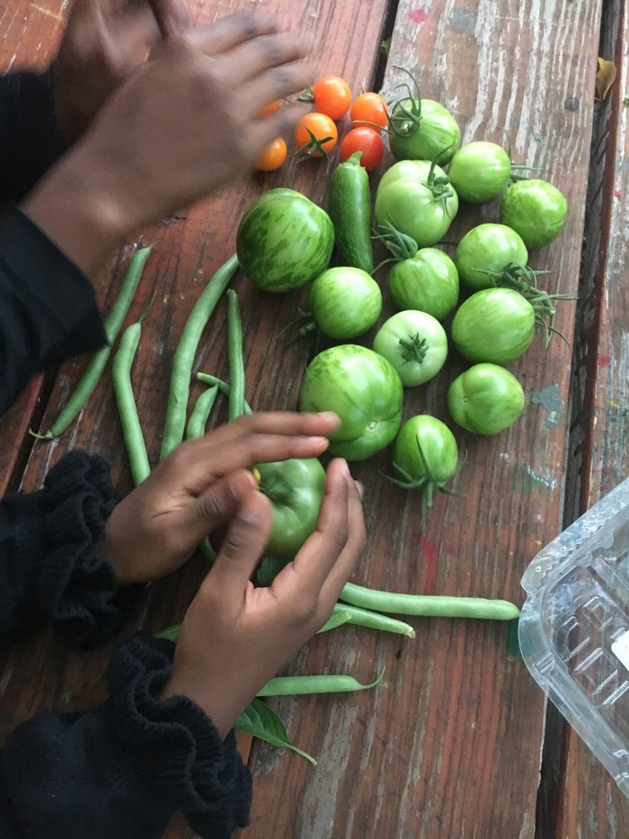 I guided the youth to plant different varieties of tomatoes (red cherry, sungolds and green zebras), peppers (black beauty, banana, thai chiles and jalapeños), green beans, Tondo di Scuro squash (huge!!), cucumbers, parsley and mint, along with non-edible ornamentals such as hostas, prairie grass, ferns, elephant ears, and wandering Jew. Throughout the rest of Summer and into Fall, the garden has been healthy and thriving, and we’ve been enjoying the harvest 🙂 The youth and staff have been taking great care of their new garden space! The staff also love to harvest on their own, which I’m very happy to see!