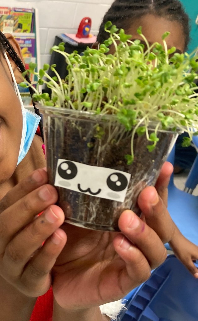 The youth at CYC also love sprouting microgreens, and we make it extra fun by adding faces to their seed cups! They have so much fun watering seeds and taking care of their sprouts 🙂 They’re also fascinated that they can see the roots through the clear cups!