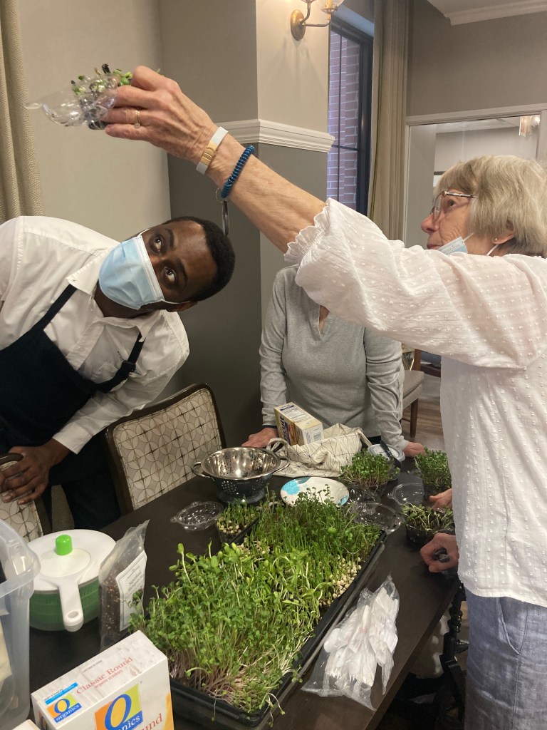 With proper supervision and precautions, seniors have the opportunity to safely harvest and consume the produce that they’ve grown. They derive great enjoyment out of experiencing the seed-to-table process for themselves. We at RCG are also enthusiastic and open to connecting with the chefs in your cafeteria or dining hall to explore options for growing herbs and veggies that could be utilized in the kitchen.